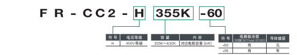 | FR-F842-09620-2-60/500KW | 500KW | 962 | 450KW | 866 | 243 | FR-F840-06830-2-60/315KW | 355KW | 683 | 315KW | 610 | 166 | |