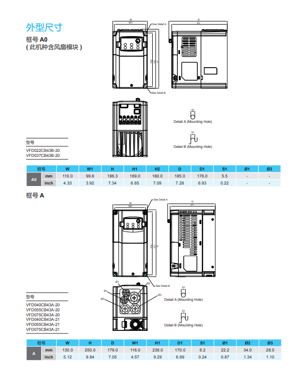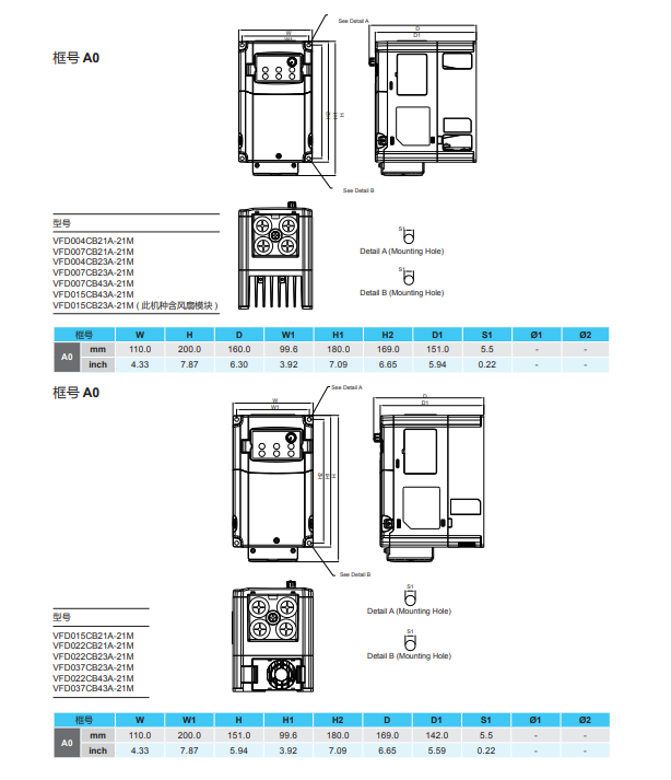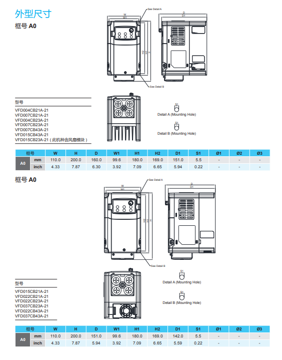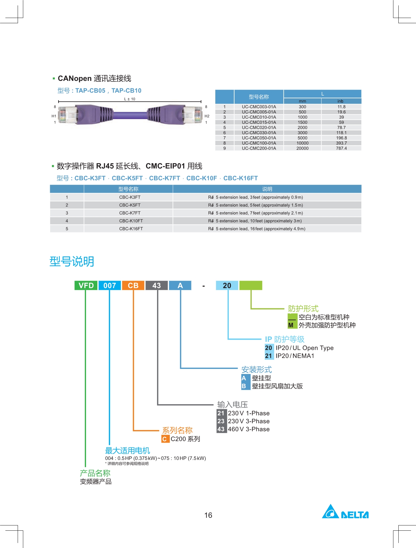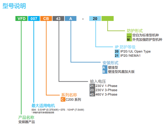 | 型號VFD-0OOCB43A-000” | 022 | 037 | 040 | 055 | 175 | ||