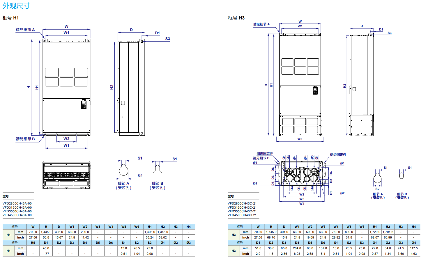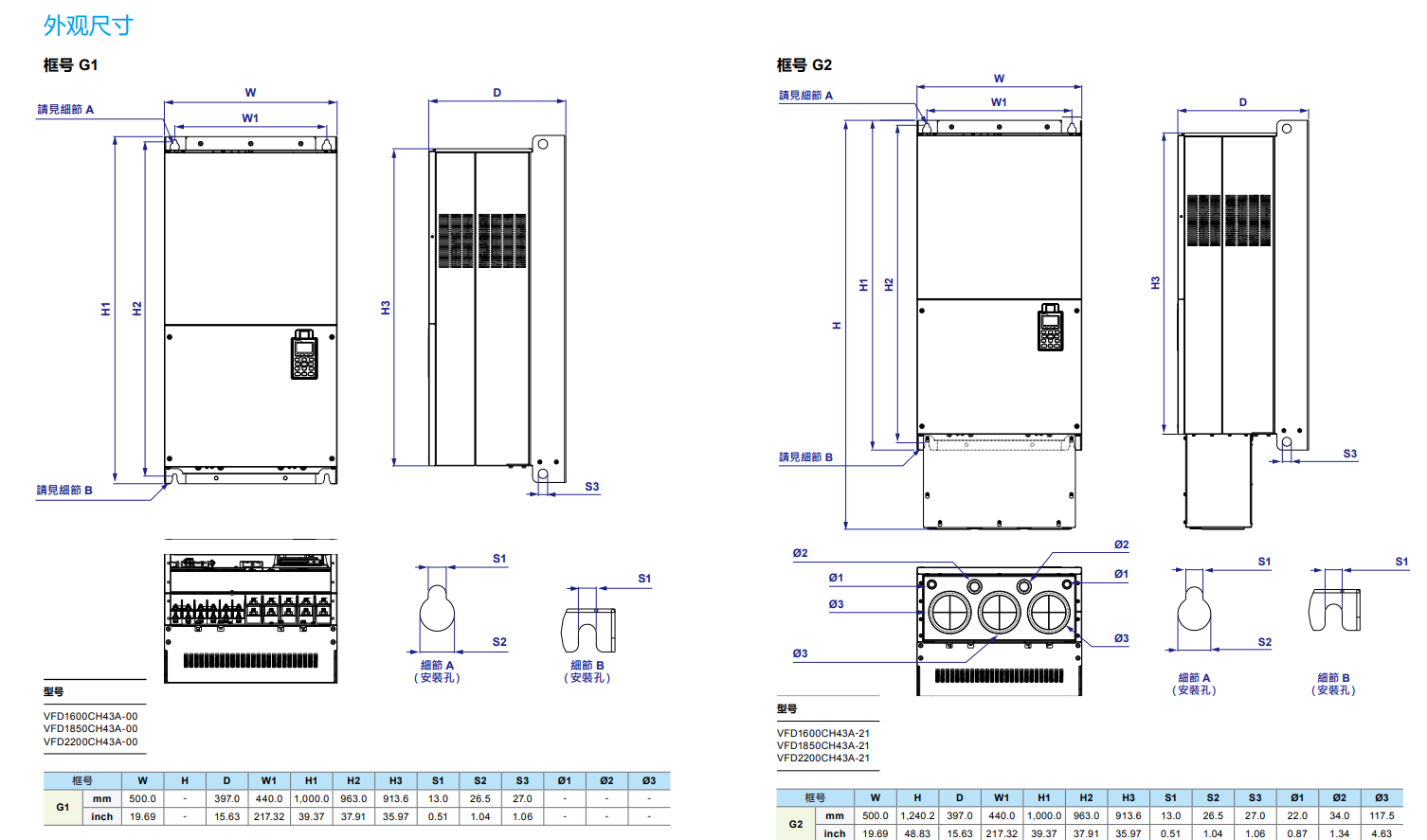 型號(hào) VFD_-_CH23A-XX 370 450 550 750 900 1100 1320 1600 1850 2200 2800 3150 3550 4500