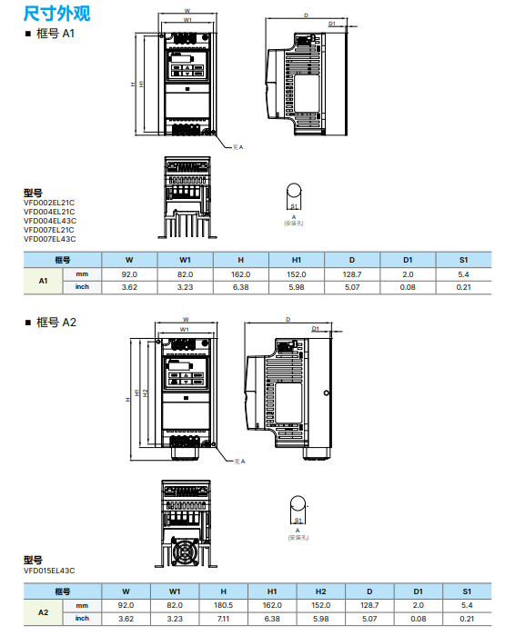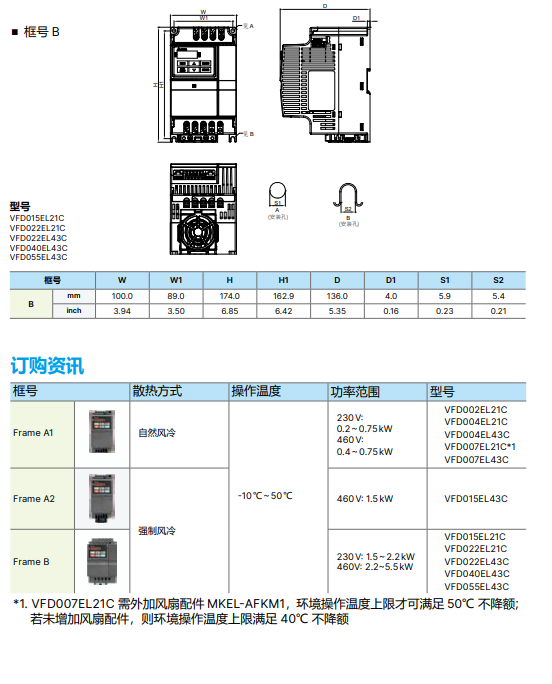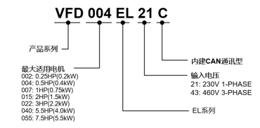 型號 VFD-_EL21C 002 004 007 015 022 004 007 015 022 040 055