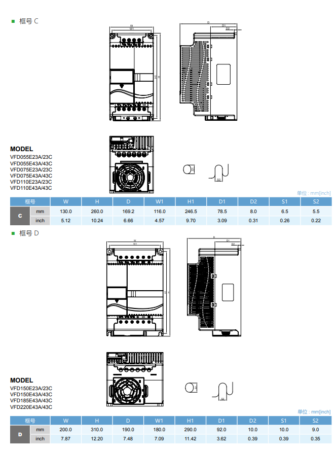 本系列采用彈性模塊的設計,內置PLC功能,可編寫簡易程序儲存與執行;并可外加特殊功能擴展卡及通訊卡,是小馬力型的代表,滿足多元化的需求。