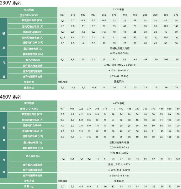 | VFD-037V | 6.5 | 17 | 5.0 | 21 | 7.5 | 21 | 6.8 | |||||||