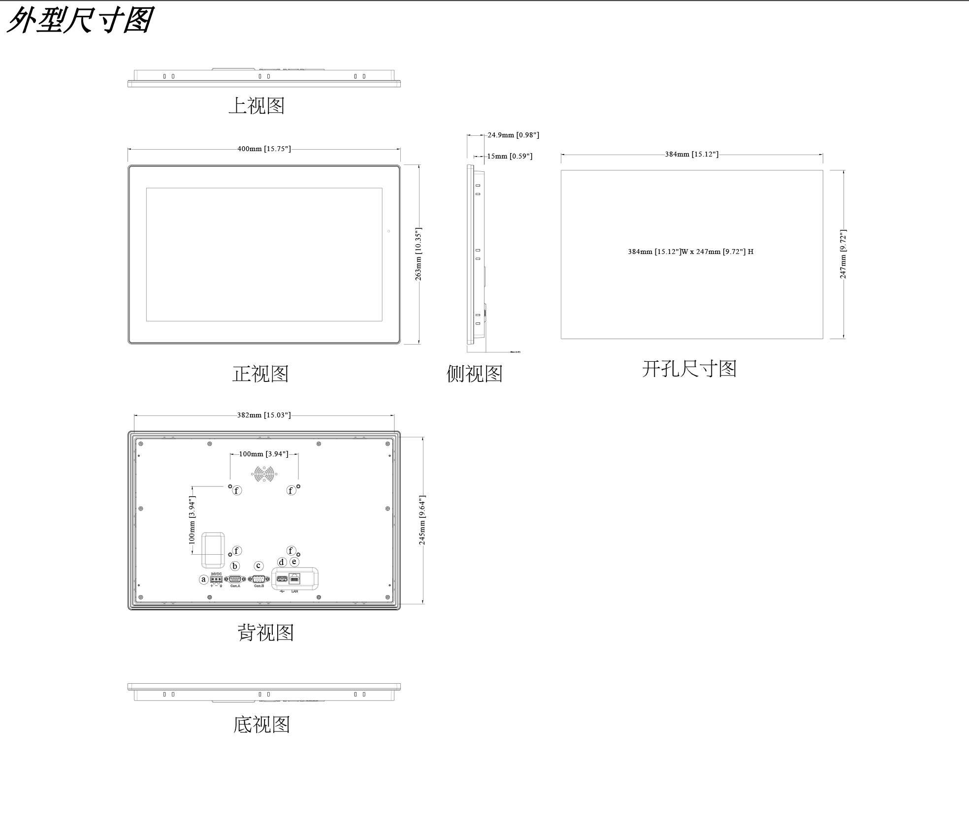 | 安裝方式 | 面板安裝, VESA壁掛架100x100mm | |