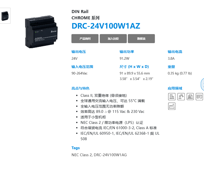 輸入電壓范圍 90-264 VAC 90-264 VAC (直流輸入