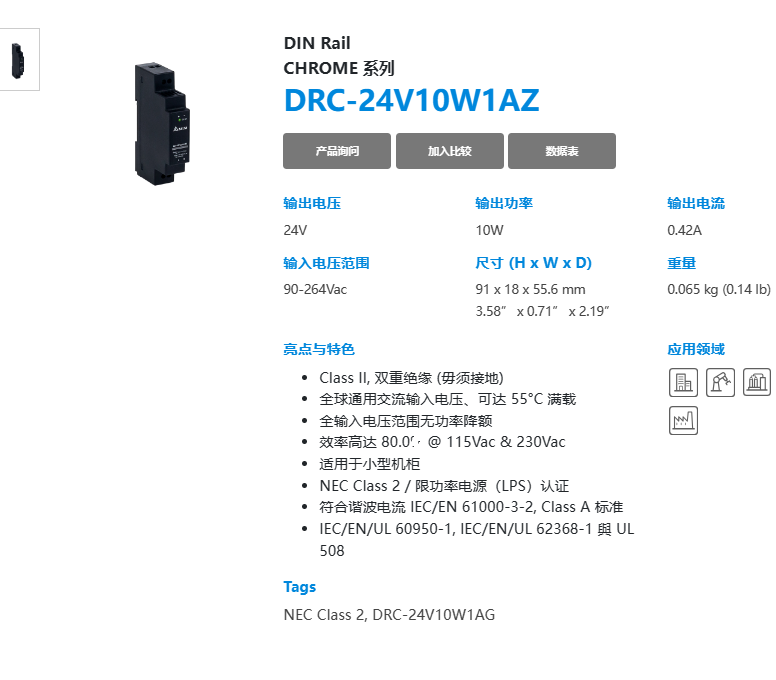 輸入電壓范圍 90-264 VAC 90-264 VAC (直流輸入