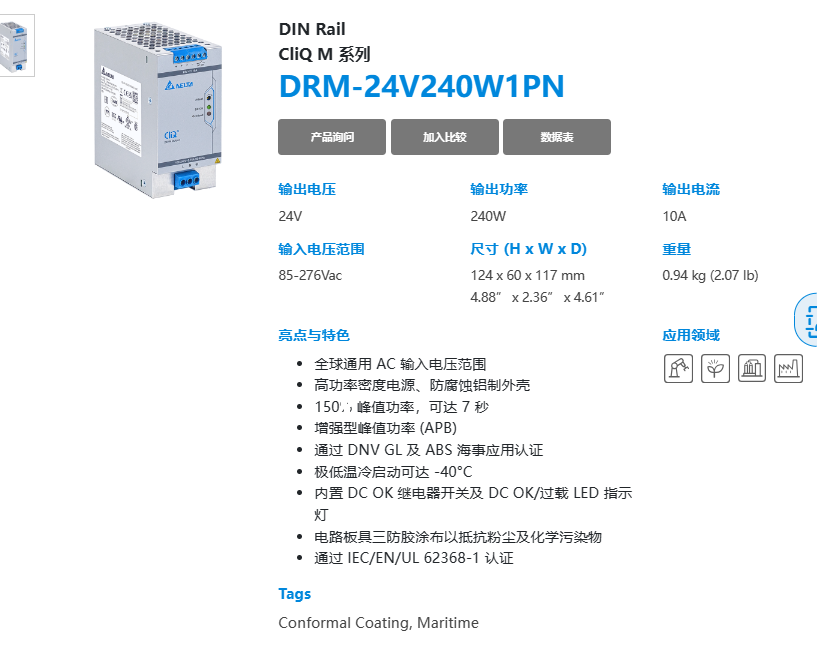 內置 DC OK 繼電器開關及 DC OK/過載 LED 指示燈