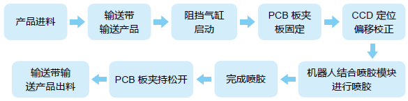 - 采用臺達水平關節機器人 (SCARA)帶動噴閥模塊執行噴膠作業