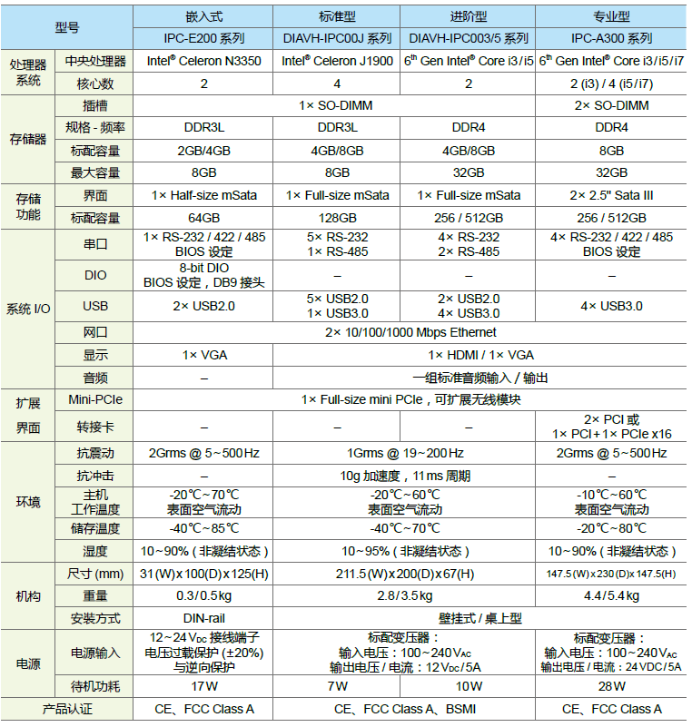 高性能、高可靠、密封無風扇的工業計算機,板載Intel? Celeron N3350/J1900 & Intel? Core Processor i3/ i5/ i7 處理器,8GB RAM 內存,整機具有豐富的 I/O 接口。支持Windows 7/8/10、Linux等操作系統