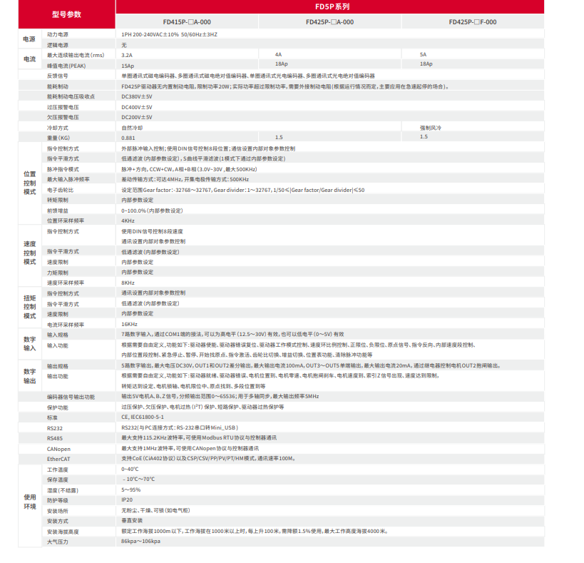 ? 支持MODBUS、CANopen、 EtherCAT通訊控制;