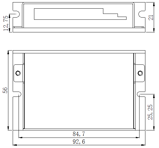 安裝說明 驅動器的外形尺寸為:92.6×56×21mm,安裝孔距為84.7mm。既可以臥式和立式安裝,建議來用立式安裝。安裝時,應使其緊貼在金屬機柜上以利于散熱。