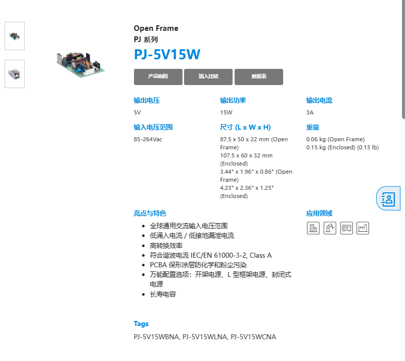 Open Frame PJ 系列 PJ-5V15W