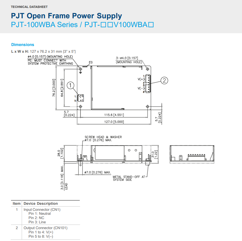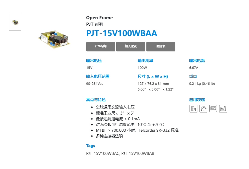 Open Frame PJT 系列 PJT-15V100WBAA