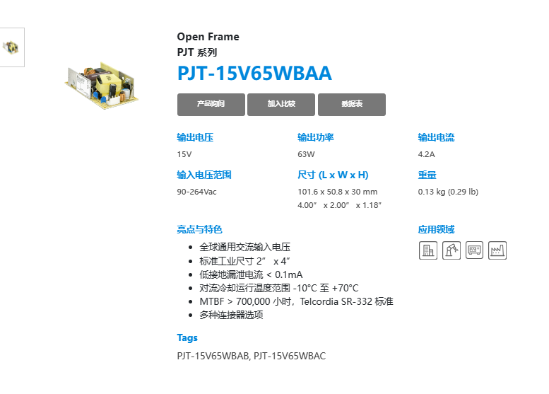 Open Frame PJT 系列 PJT-15V65WBAA