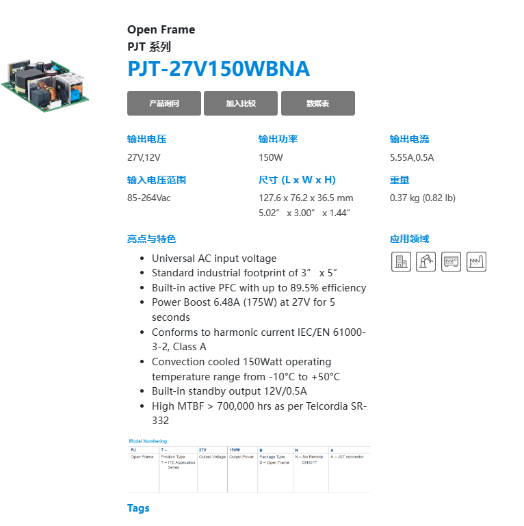 Open Frame PJT 系列 PJT-27V150WBNA