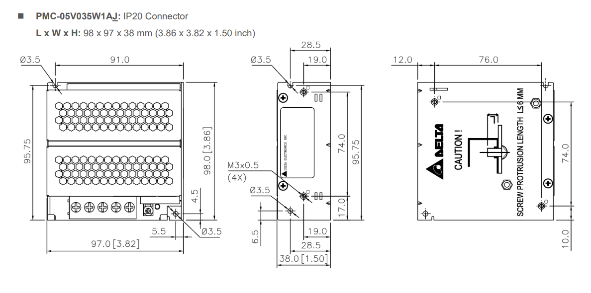 尺寸-98 x 97 x 38 mm-3.86” x 3.82” x 1.50”