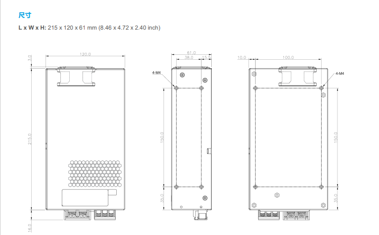 尺寸215 x 120 x 61 mm8.46” x 4.72” x 2.40”