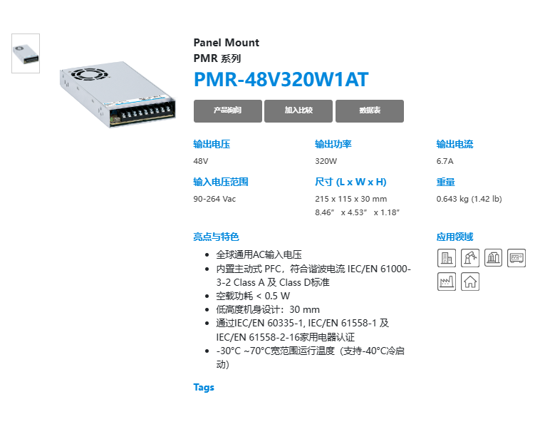 輸出 PMR-12V320W1AT PMR-24V320W1A PMR-36V320W1AT PMR-48V320W1AT
