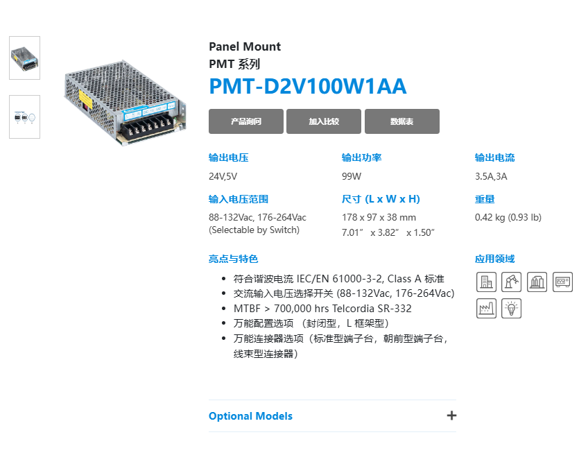 | 輸入電壓范圍 | 90-264 VAC | 90-132 VAC, 180-264 VAC (選擇開關(guān)) | 90-264 VAC | 90-132 VAC, 180-264 VAC (選擇開關(guān)) | |||||