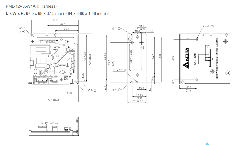 | 輸出 | PMT-12V35W2BA□ | PMT-12V50W2BA□ | PMT-12V75W2BA□ | PMT-12V100W2BA□ | PMT-12V150W2BA□ | PMT-12V150W2CA□ | PMT-12V200W2B□□ | PMT-12V350W2B□□ | |