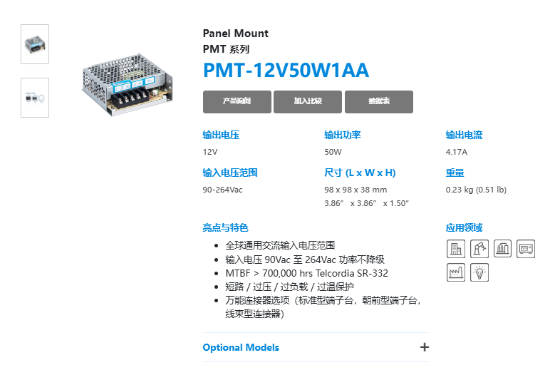 輸入電壓范圍 90-264 VAC 90-132 VAC, 180-264 VAC