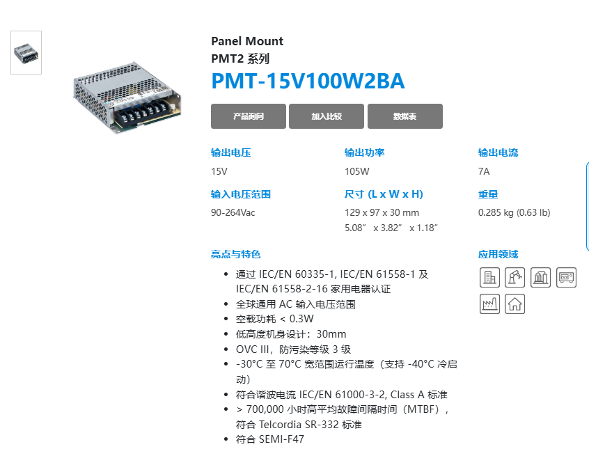 輸出 PMT-15V35W2BA PMT-15V50W2BA PMT-15V75W2BA PMT-15V100W2BA PMT-15V150W2BA PMT-15V150W2CA