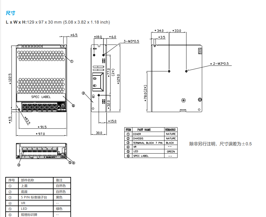 尺寸(L × W × H) mm 99 × 82 × 29 99 × 82 × 29 99 × 97 × 30 129 × 97 × 30 159 × 97 × 30 159 × 97 × 30