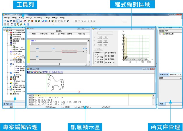 整合運動控制編輯:ISPSoft V3將邏輯編程與運動編程整合在同一套軟件上,并提供符合國際標準規格 PLCopen? 的功能塊以及臺達提供的豐富功能塊。
