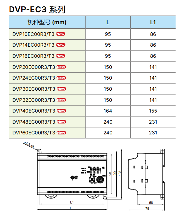 | 基本型主機 | DVP10ECOOR3 | 6 | 4 | 繼電器 | 100-240W |