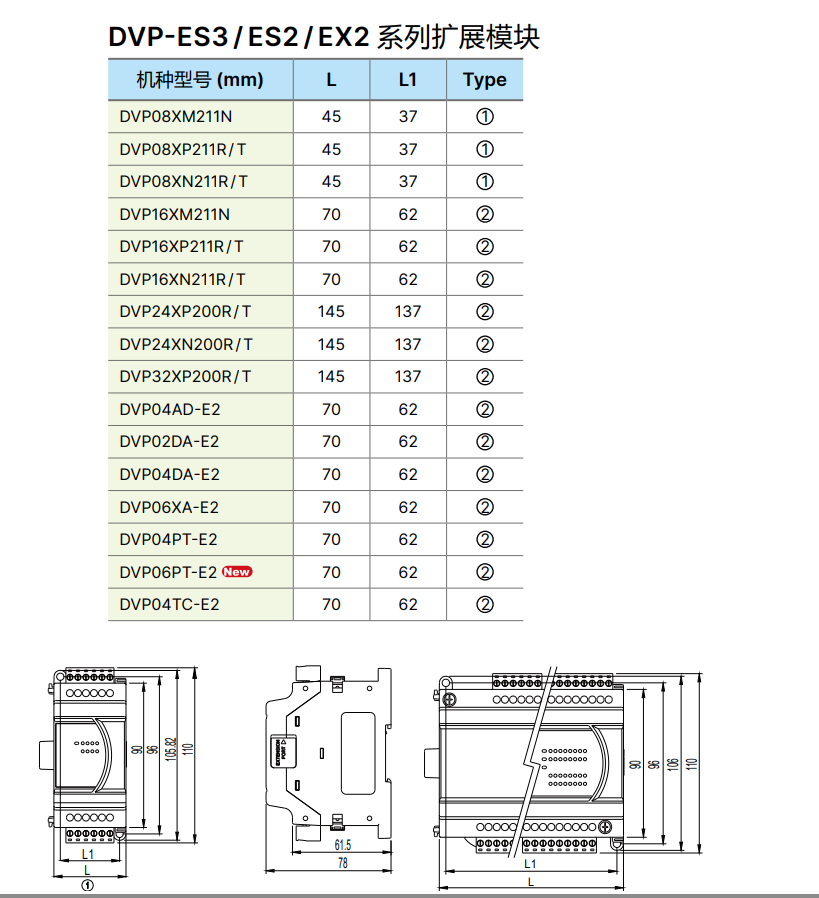 DVP-ES3 / ES2 / EX2 數字輸入 / 輸出模塊 (AC 電源供應)