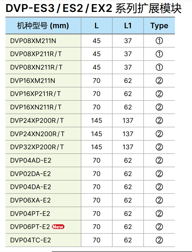 DVP-ES3 / ES2 / EX2 數字輸入 / 輸出模塊 (AC 電源供應)
