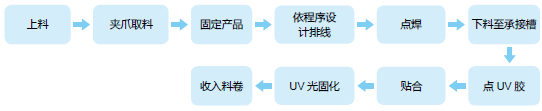 - 繞線、焊接、進載帶、點膠照 UV光固化、成品封裝于載帶內,集合多功能于一機