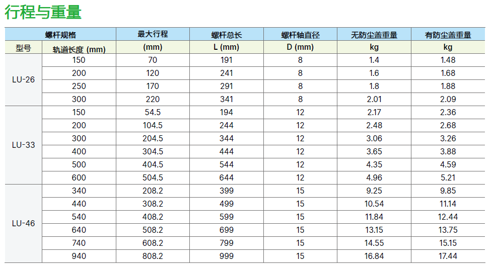 臺達直結式螺桿模組 LU 的電機與螺桿采直結式去聯軸器設計,具高剛性、低轉動慣量與 快速響應等特性,額定推力 181 ~ 905 N。其重復精度與整定時間比裝聯軸器的螺桿模組優異, 精巧體積節省設備空間;適合取代欲提升穩定性與縮小空間的傳統螺桿應用。